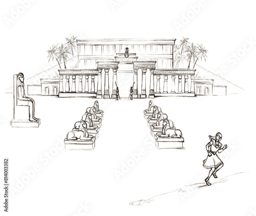 Fototapeta premium Pencil drawing. Moses flees from Egypt