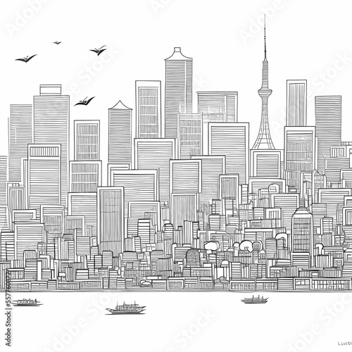© GregorMeier, Fototapeta premium Pencil drawing of the skyline of Tokyo - Generative AI