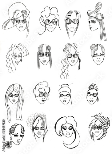 Fototapeta premium pencil head outline female models-6
