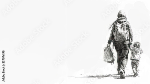 © Ema, Obraz premium Pencil sketch art of A mother walk with her child outdoor activity