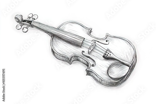 © Маргарита Вайс, Obraz premium pencil sketch musical instrument classical violin isolated on a white background