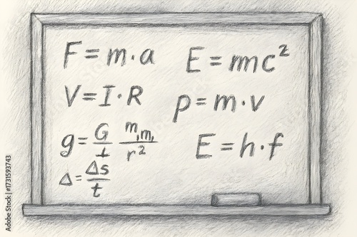© BETHA, Fototapeta premium Pencil sketch of a physics formula board