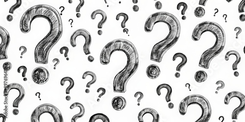 Naklejka premium Pencil Sketch of Question Marks, black and white, abstract concept,...