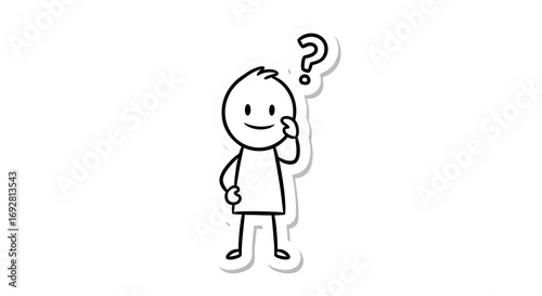 Obraz premium Penciled Stick Figure Pondering - A Simple Question Mark Illustration.