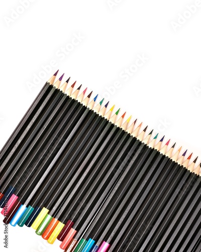 © Aleksandr, Obraz premium pencils in the row top view isolated