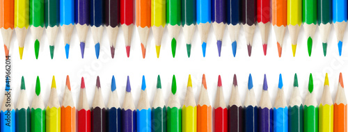 Fototapeta premium pencils isolated on white background with copy space. School and creative painting concept with colored pencils. Back to school banner. packaging template for colored pencils, notebooks and holder