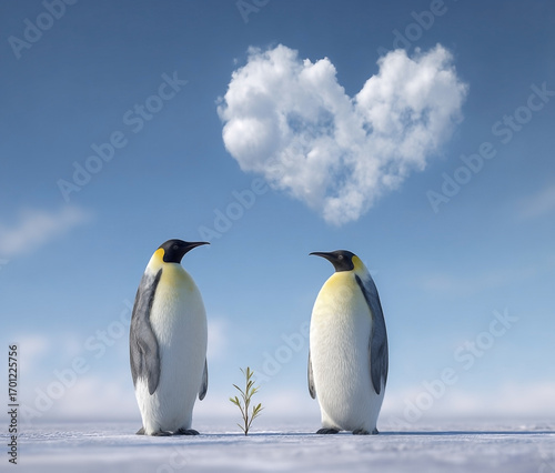 © Image, Fototapeta premium Penguin Affection: A Heartfelt Cloudscape Over Antarctic Ice With Budding Hope
