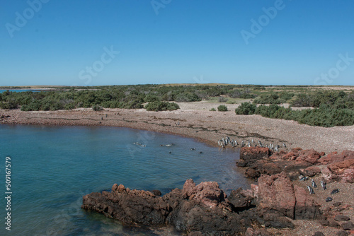© Alberto, Obraz premium penguin beach in punta tombo reserve in patagonia argentina