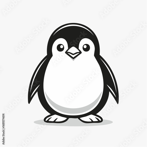 Fototapeta premium Penguin bird simple black line art image, Black bold outline vector icon,...