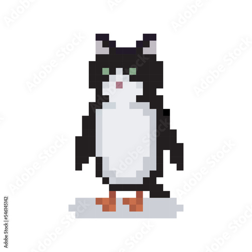 Obraz premium Penguin cat icon, pixel art meme