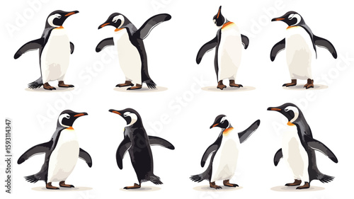 © Morris, Fototapeta premium Penguin Characters in Various Actions Set