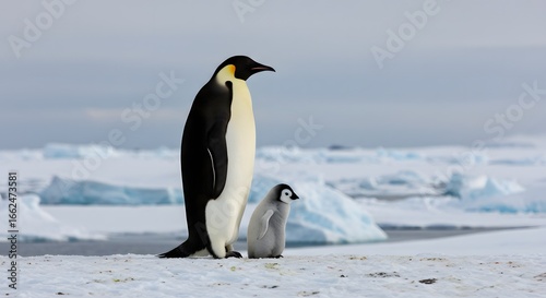 © Doddy, Fototapeta premium Penguin chick and adult on ice