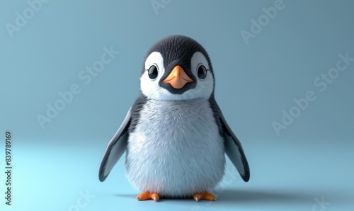 © NeeArtwork, Fototapeta premium Penguin chick flat design front view snow animation vivid
