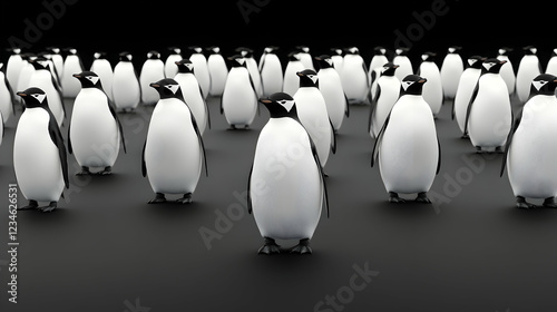 Obraz premium Penguin colony on dark Antarctic ground; teamwork, unity concept; ideal for...