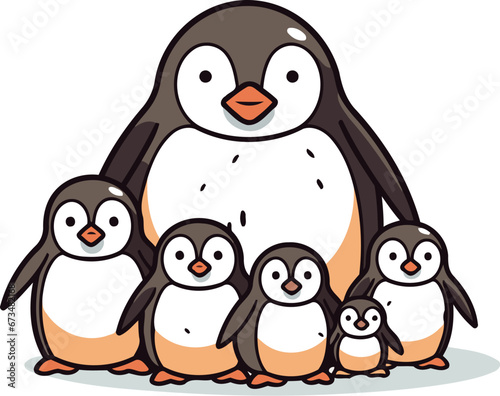 Fototapeta premium Penguin family. Cute cartoon character. Vector illustration.