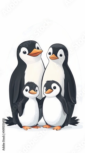 © Julaini, Fototapeta premium Penguin family illustration on white background