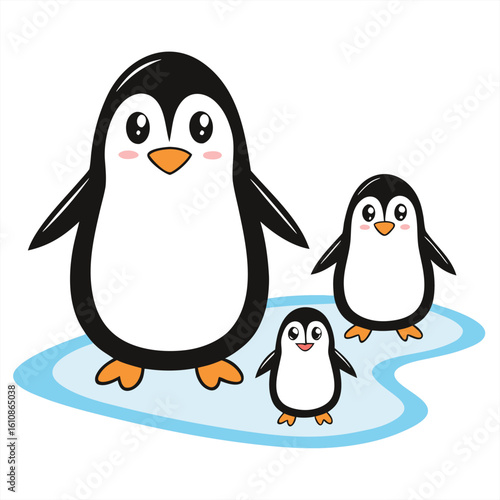 © Sharea, Naklejka premium Penguin family sliding on ice playful style.