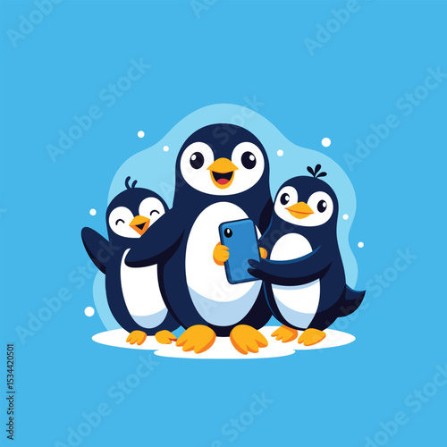 Naklejka premium Penguin Family Standing Together – Cute Animal Vector Scene
