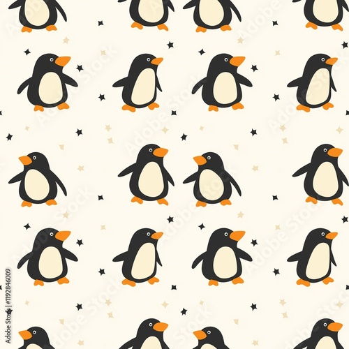 © srenhouse, Obraz premium Penguin graphic seamless pattern