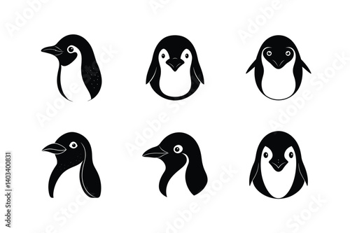 © Jadab Chandra Ray, Obraz premium penguin head blush vector art silhouette