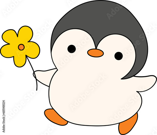 © Ellette Lorelei, Obraz premium Penguin hold flower illustration