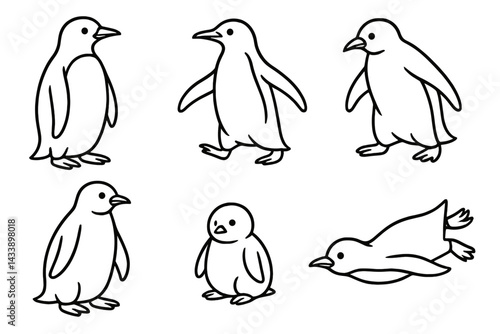 © Andrei, Naklejka premium Penguin icon set featuring various poses and activities for creative design