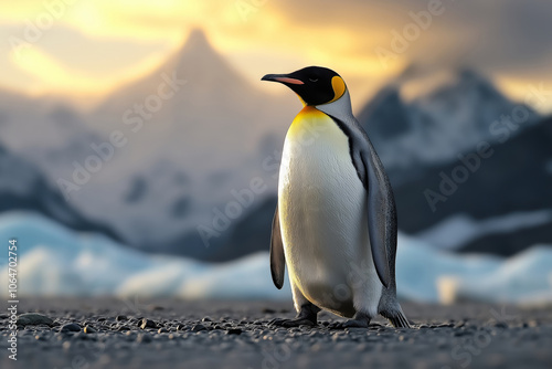 © Juri, Fototapeta premium penguin in a standing pose with a icy landscape background