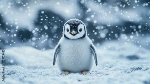 © lnsu, Fototapeta premium Penguin in cold weather with falling snow