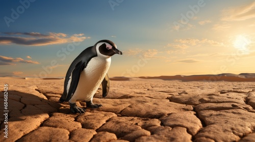 © Klay, Fototapeta premium penguin in the desert: symbolizing environmental change impact on wildlife