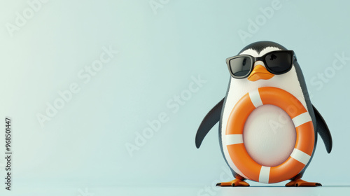 © warunthorn, Fototapeta premium Penguin Lifeguard.