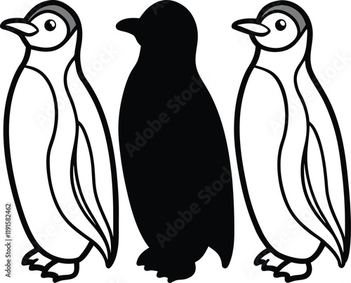 © Bharotray, Naklejka premium Penguin line arts with white background . Penguin continuous one line drawing vector illustration.