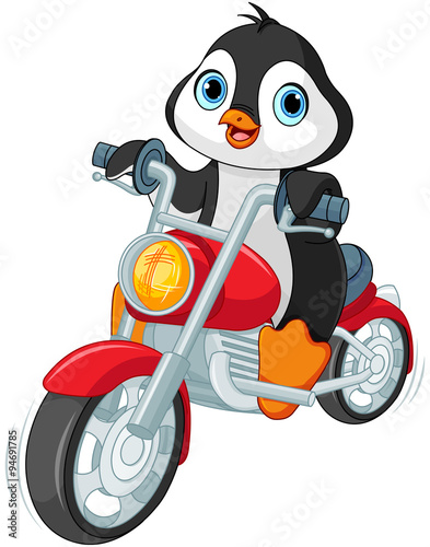 © Anna Velichkovsky, Naklejka premium Penguin Motorcyclist