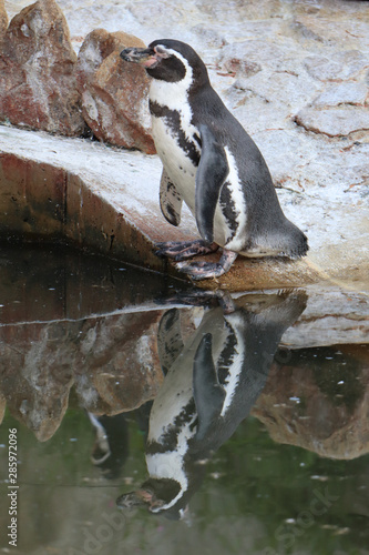 © Manuela, Naklejka premium penguin on rock with waterreflection