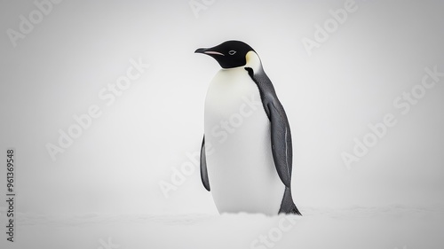 © cloud7days, Obraz premium Penguin set against a minimal background with its sleek form and monochrome colors in focus, creating a striking image.