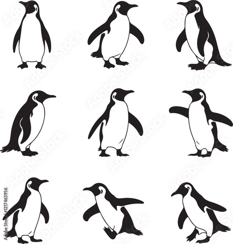 © Sabina, Naklejka premium penguin silhouette drawing style photo black and white background.