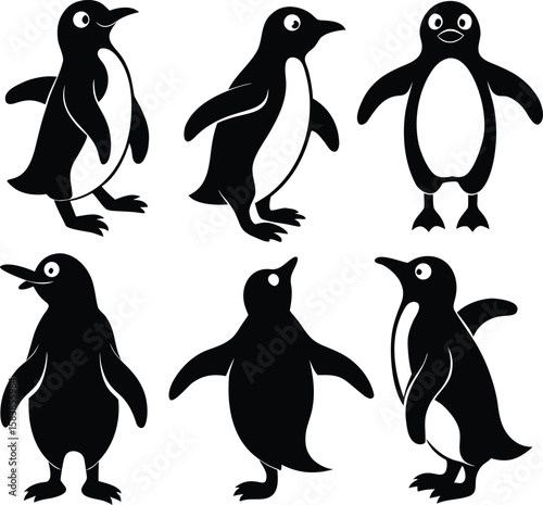 © nillgraph20, Naklejka premium Penguin Silhouette Set – Antarctic Bird Vector Collection in Walking and Standing Poses