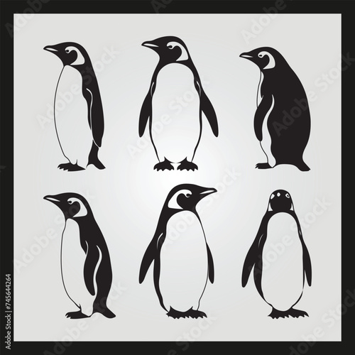 © Shamima, Naklejka premium Penguin silhouette set Clipart on a hex color background