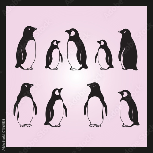 © Shamima, Naklejka premium Penguin silhouette set Clipart on a hex color background
