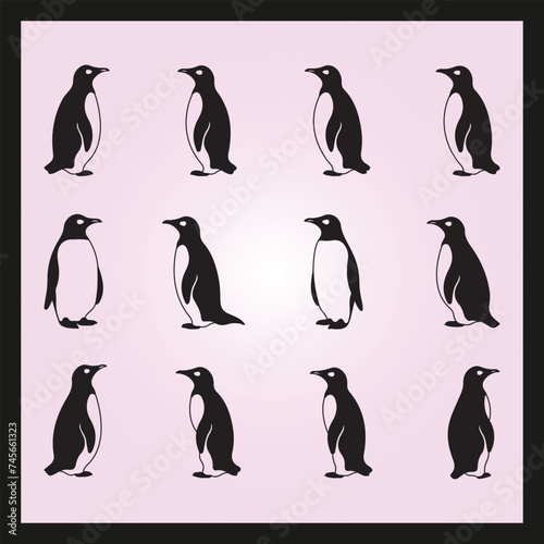 © Shamima, Naklejka premium Penguin silhouette set Clipart on a hex color background