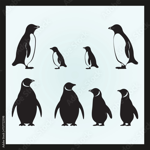 © Shamima, Naklejka premium Penguin silhouette set Clipart on a hex color background