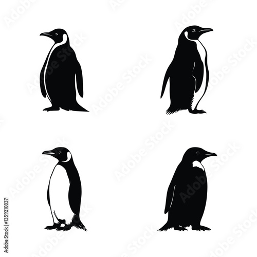 © Shahanur, Naklejka premium Penguin silhouette set clipart on a white background