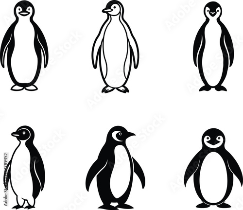 © Mr Graphics2.0, Naklejka premium penguin silhouette vector icon set, symbol of penguins on a white background.