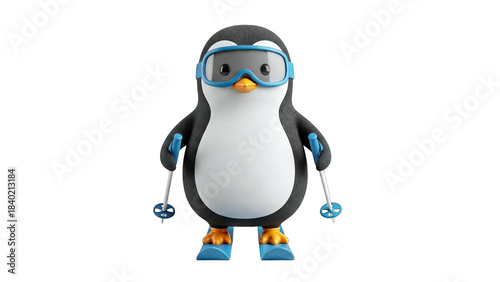 © alyastutisaraswatieu, Fototapeta premium Penguin Skiing with Goggles on White Background