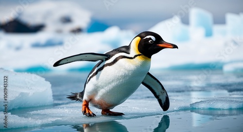 © Arceli, Fototapeta premium Penguin sliding on ice