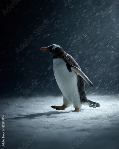 Fototapeta premium Penguin Snow Storm Dramatic Light