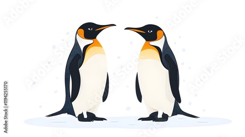 Fototapeta premium Penguin standing on ice in the polar region surrounded by snow and cold, showcasing the beauty of wildlife in Antarctica with an emperor penguin