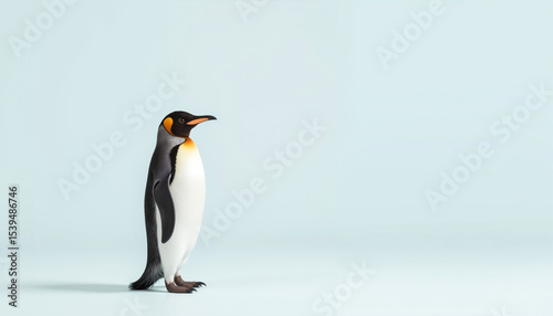© Лариса Рябцева, Naklejka premium Penguin standing on smooth surface with soft blue background