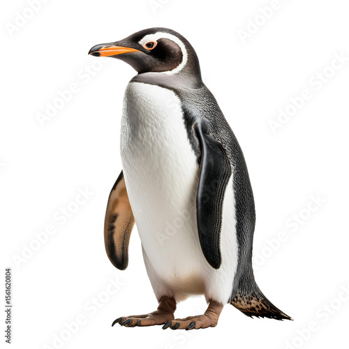 © Aryanto, Fototapeta premium Penguin Standing Upright Front View – Antarctic Bird with Black White Orange Plumage on Isolated on a transparent background