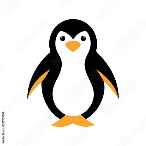 Fototapeta premium Penguin vector logo, cute black and white bird illustration, simple animal icon, wildlife mascot design, minimalistic penguin symbol, Arctic nature graphic, adorable cartoon character
