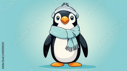 © Наталия Пилипенко, Obraz premium Penguin wearing a hat, illustration